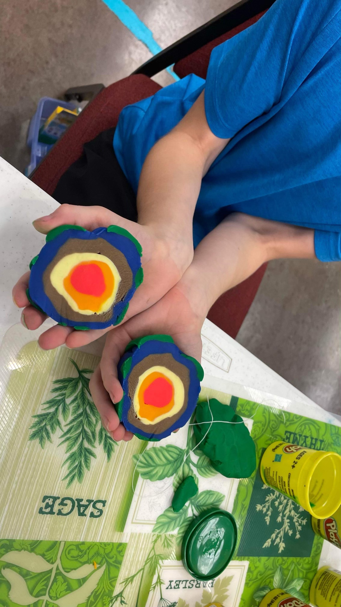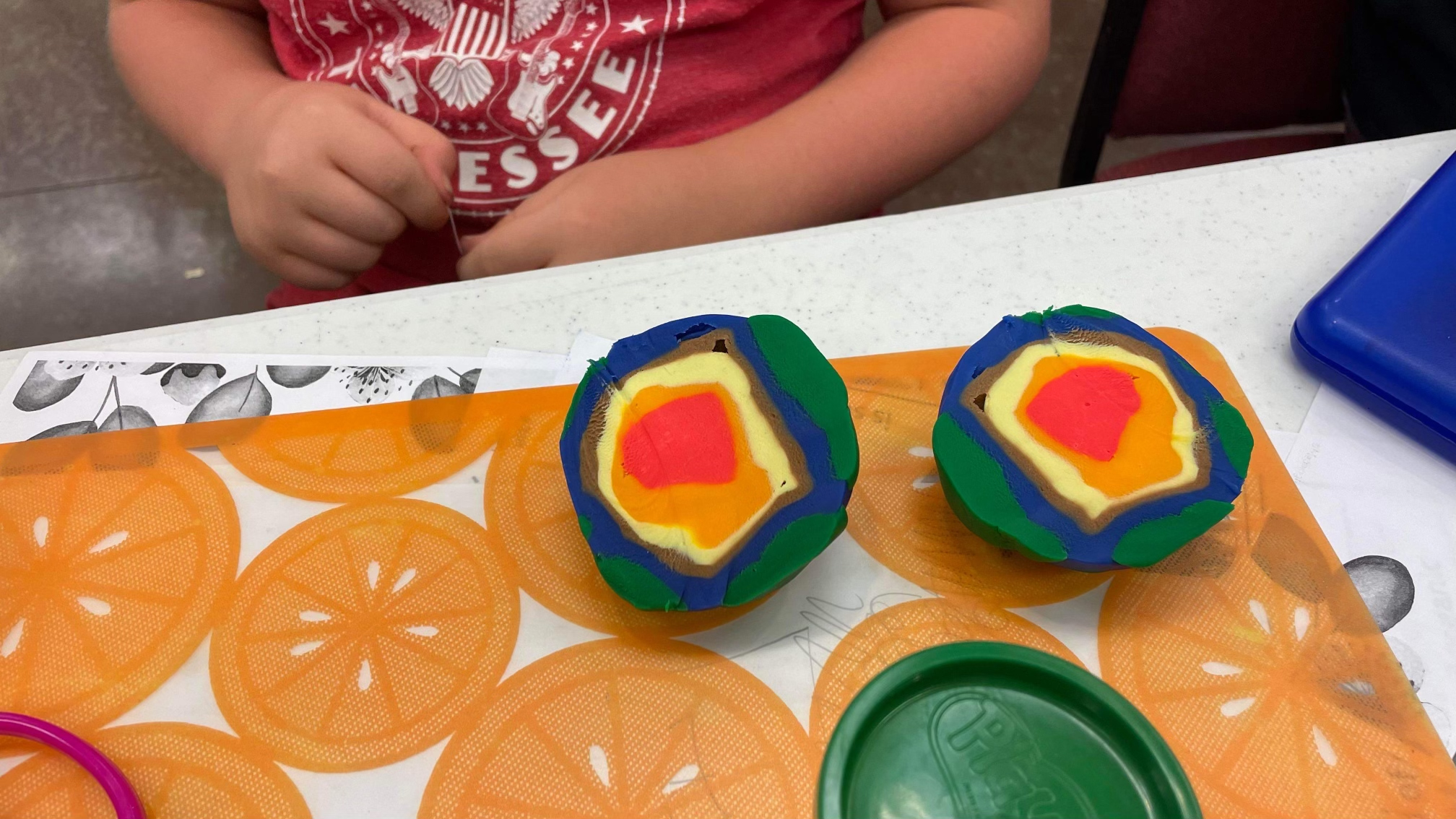 Today, this homeschool group met together to study the layers of the earth and the geosphere. Using Play-Dough, they formed each layer, one on top of the other. As each layer was created, a reading activity assisted them in understanding the specific layer. The continents’ landmasses were even added to the outer layerā the crust. Once the globe was created, it was gently sliced in half to reveal the defined layers, from the core to the crust.