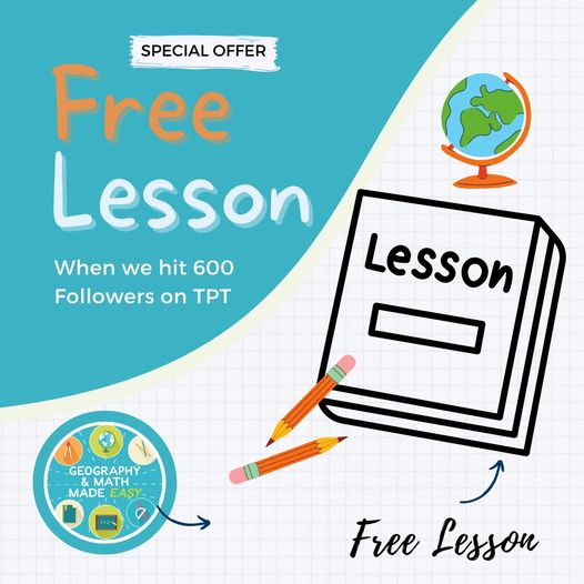 When we hit 600 followers on our TPT store, we will make one of our geography lessons free for one day to everyone. Go to our TPT store and follow us and have your geography teacher friends follow us as well. By following us, you will see new and free lessons posted in real-time. If you haven’t already, follow us here: https://www.teacherspayteachers.com/Store/Geography-And-Math-Made-Easy