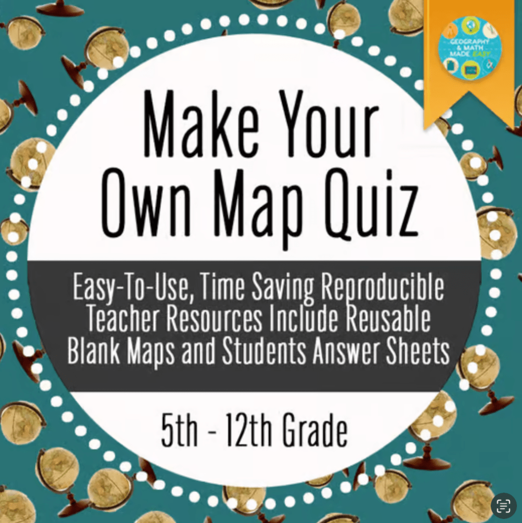Make Your Own Map Quiz (I would highly suggest this resource over pre-made assessments as you can reuse it and if you have to retest all you need to do is change the number around in 5 minutes.)